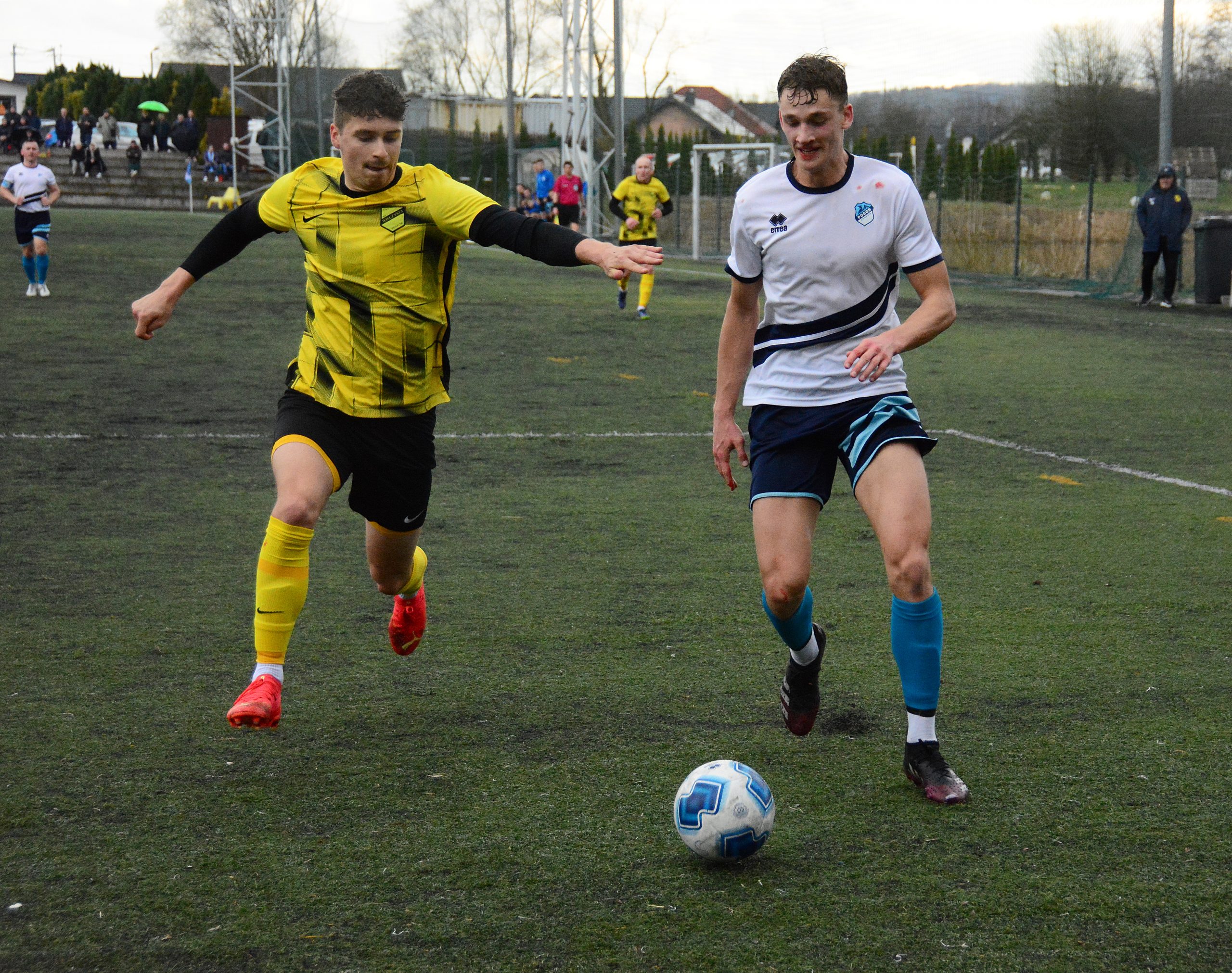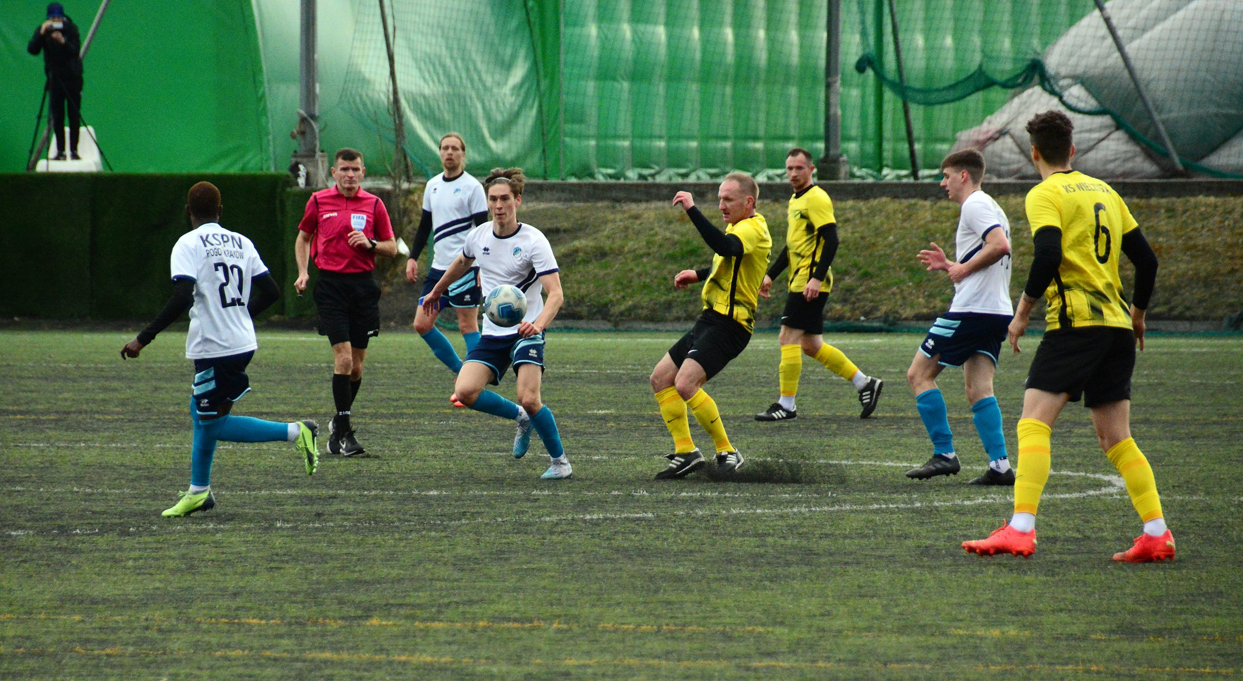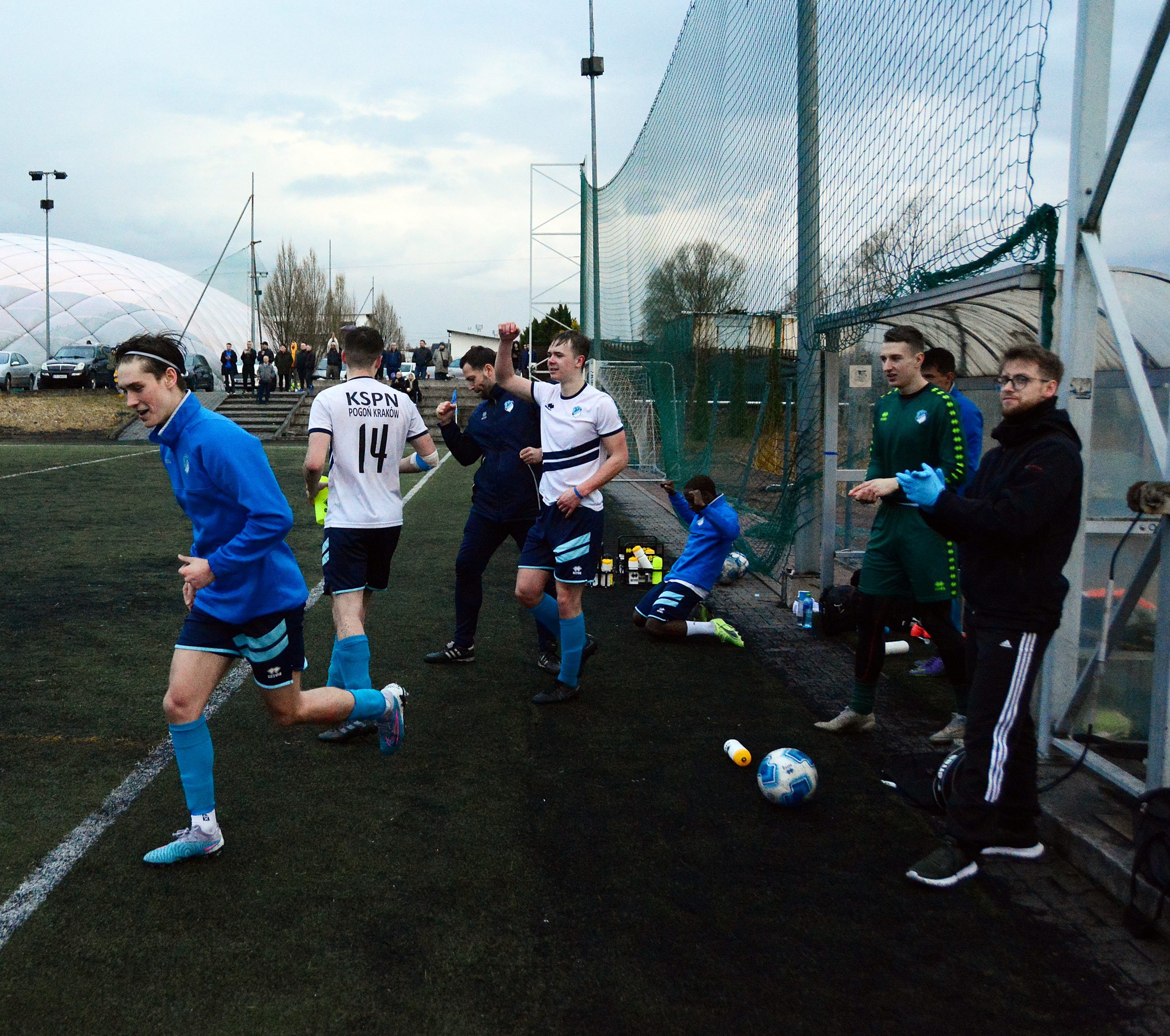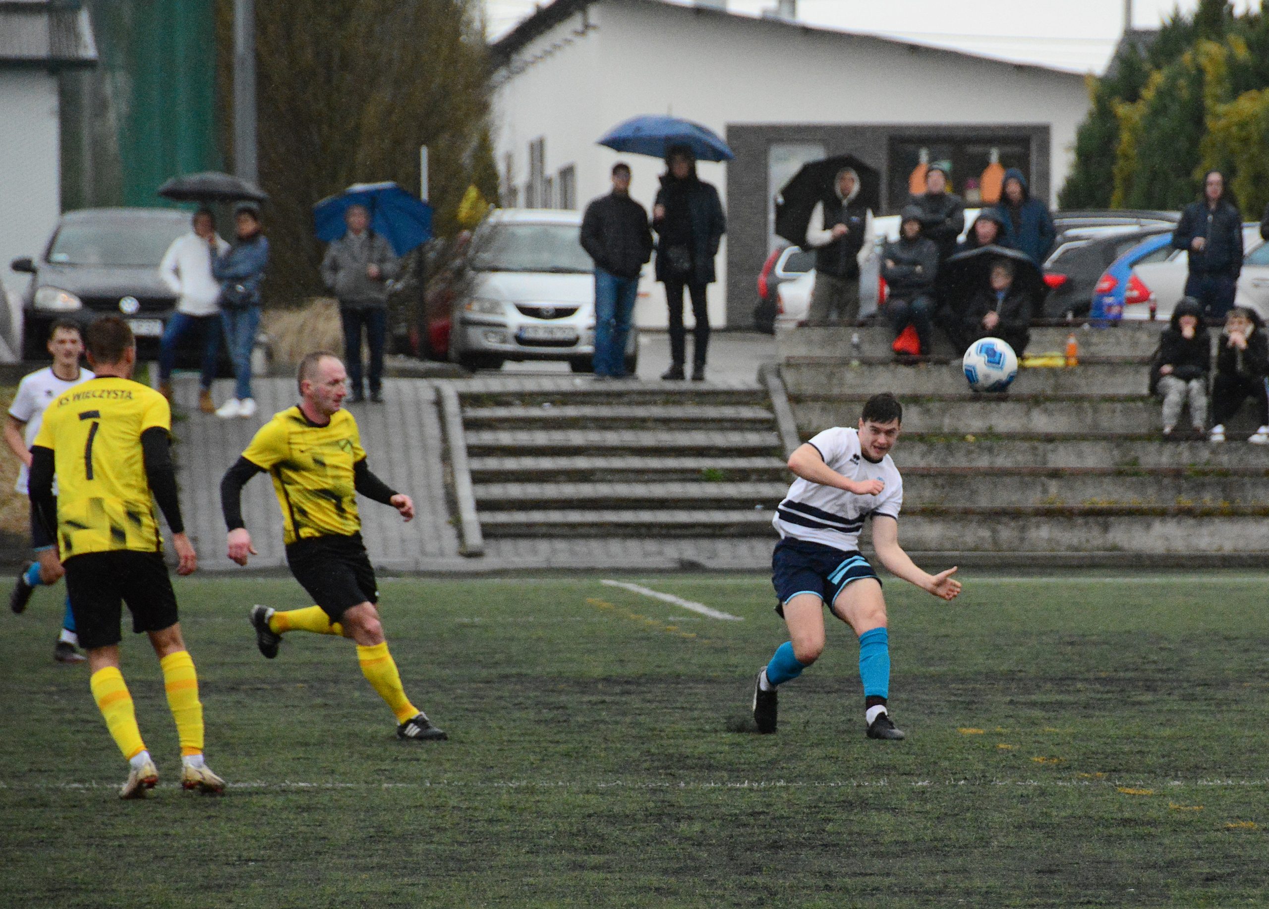 Do Skotnik przyjeżdżał lider ligowej tabeli, zwycięzca prawie wszystkich spotkań w tym sezonie (jeden remis) i drużyna, która od swojego powstania w 2020 roku nigdy nie przegrała żadnego meczu. Na dodatek pogoda była niepewna z delikatnie przebijającą się mżawką, w TV „Der Klassiker”, a przy Reymonta grała Wisła. Chyba tych kilka rzeczy spowodowało, że na trybunach boiska głównego na obiektach J&J Sport Center nie pojawiło się tak wielu kibiców jak podczas pierwszego wiosennego ligowego meczu Pogoni ze Skawinką.