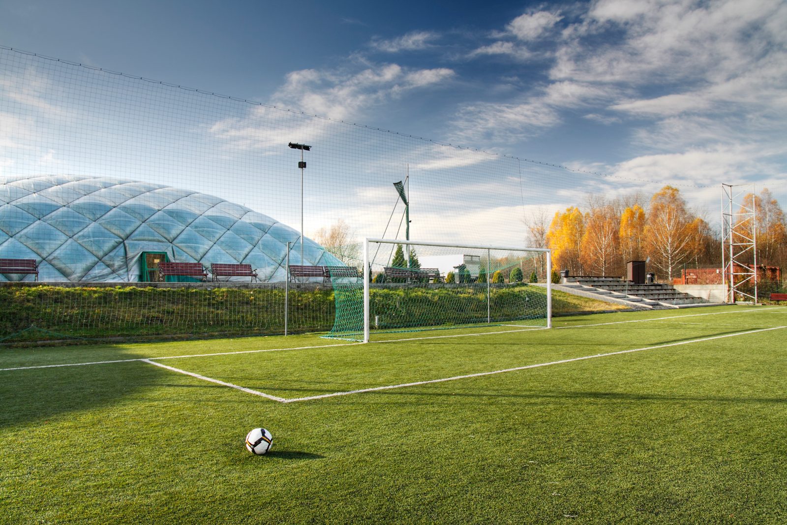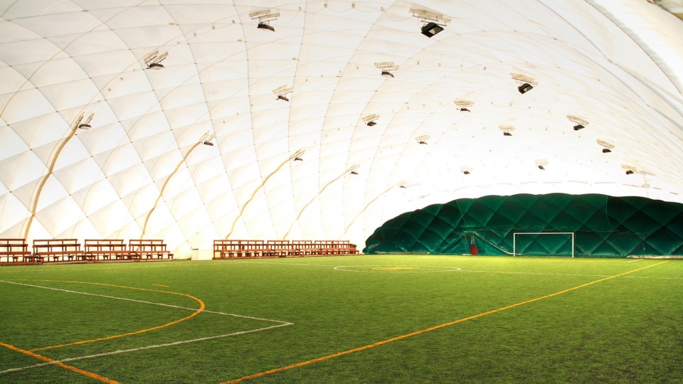 - boisko mini ze sztuczną murawą o wymiarach 35 x 20 m w stałej hali łukowej;