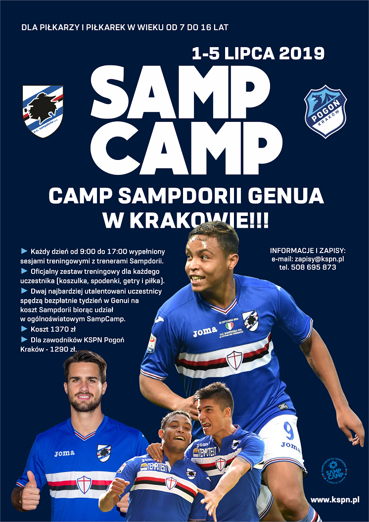Otwieramy zapisy na SAMP CAMP – jedyny w tej części Europy wakacyjny obóz piłkarski legendarnej Sampdorii Genua!Camp odbędzie się w dniach 1-5 lipca 2019 r. Jest przeznaczony dla wszystkich chętnych w wieku od 7 do 16 lat.